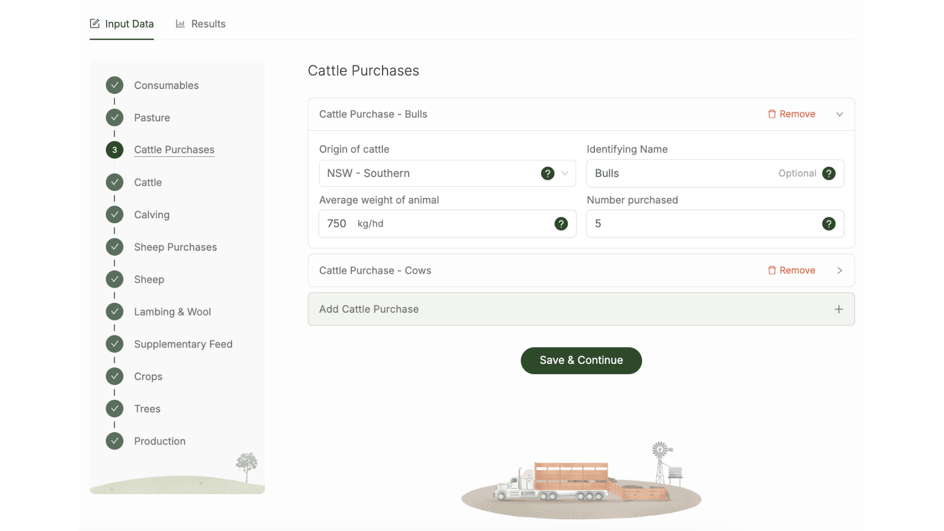 Our goal is to help producers get a clear understanding of their emissions. We use a 'user data entry' approach, meaning accuracy relies on the quality of data entered. The Ruminati PRIME tool flags any data that seems off, and it’ll also notify you in VISION if shared data seems inaccurate and will exclude it from your totals.
